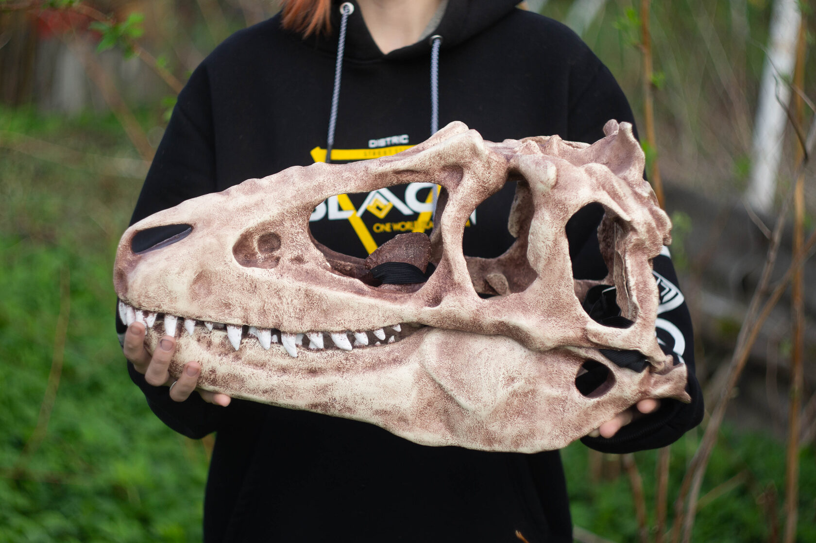 К примеру, для нашей самой большой маски — маски тираннозавра мы печатаем специальную накладку для подбородка. Дело в том, что у этой маски больше ремней и резинок, и когда ты надеваешь эту маску, то одна из них натягивается на подбородок.