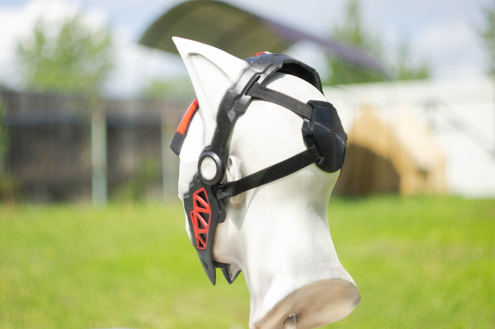 Некоторые маски, такие как маска кибер кота, и практически все маски-шлемы необходимо специально подгонять, чтобы они хорошо сидели на голове. Поэтому мы часто используем паралон, чтобы маска не наезжала на глаза и не болталась.