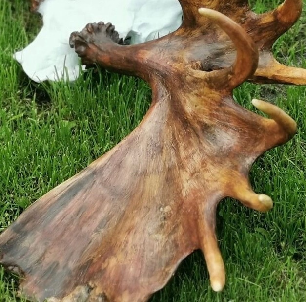 Работа с грунтом — основная. Грунт требуется довольно плотный. Наносим его на места соединений. После засыхания работаем наждачкой. Далее с помощью грунта наносим текстуру. Легче всего работать с рогами — мы водим грунт линейно, прямо, если это рога оленя или лося, а, например, у барана — по кругу. Текстура получается достаточно легкой.