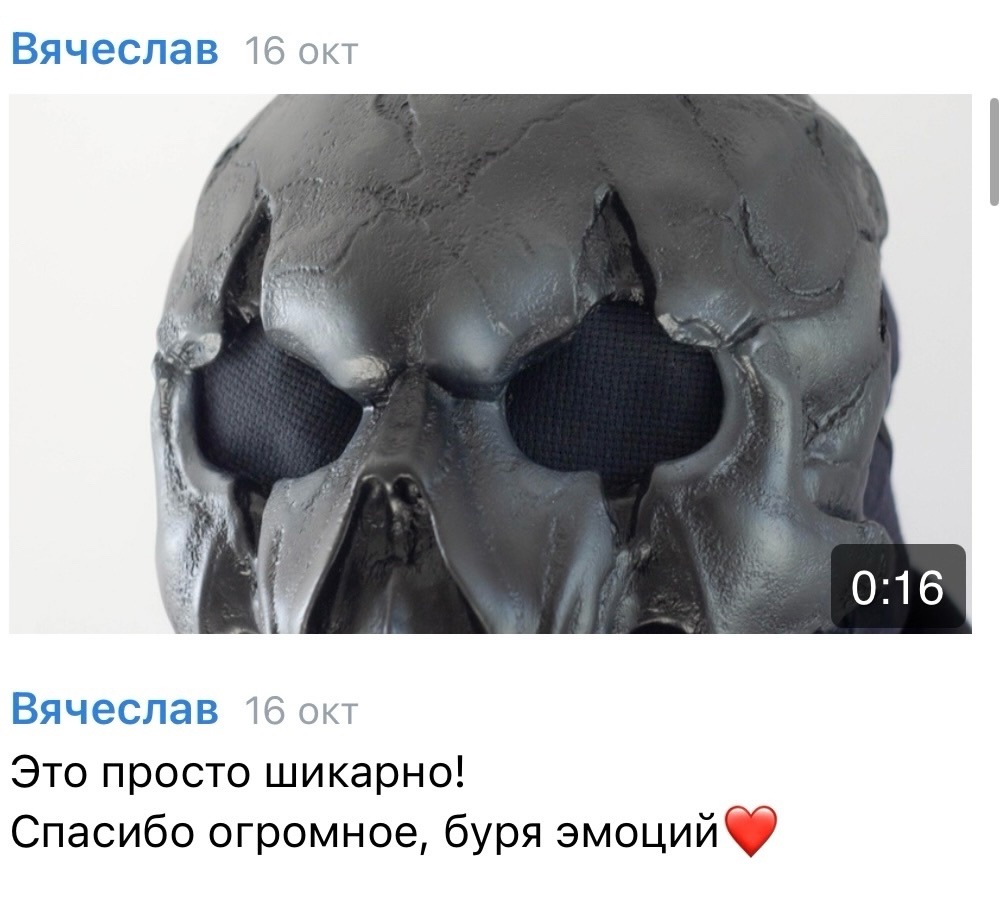 В процессе работы к маске добавились и другие заказы. После череды исправлений и доработок маска была готова и вместе с другими товарами отправилась к своему владельцу.