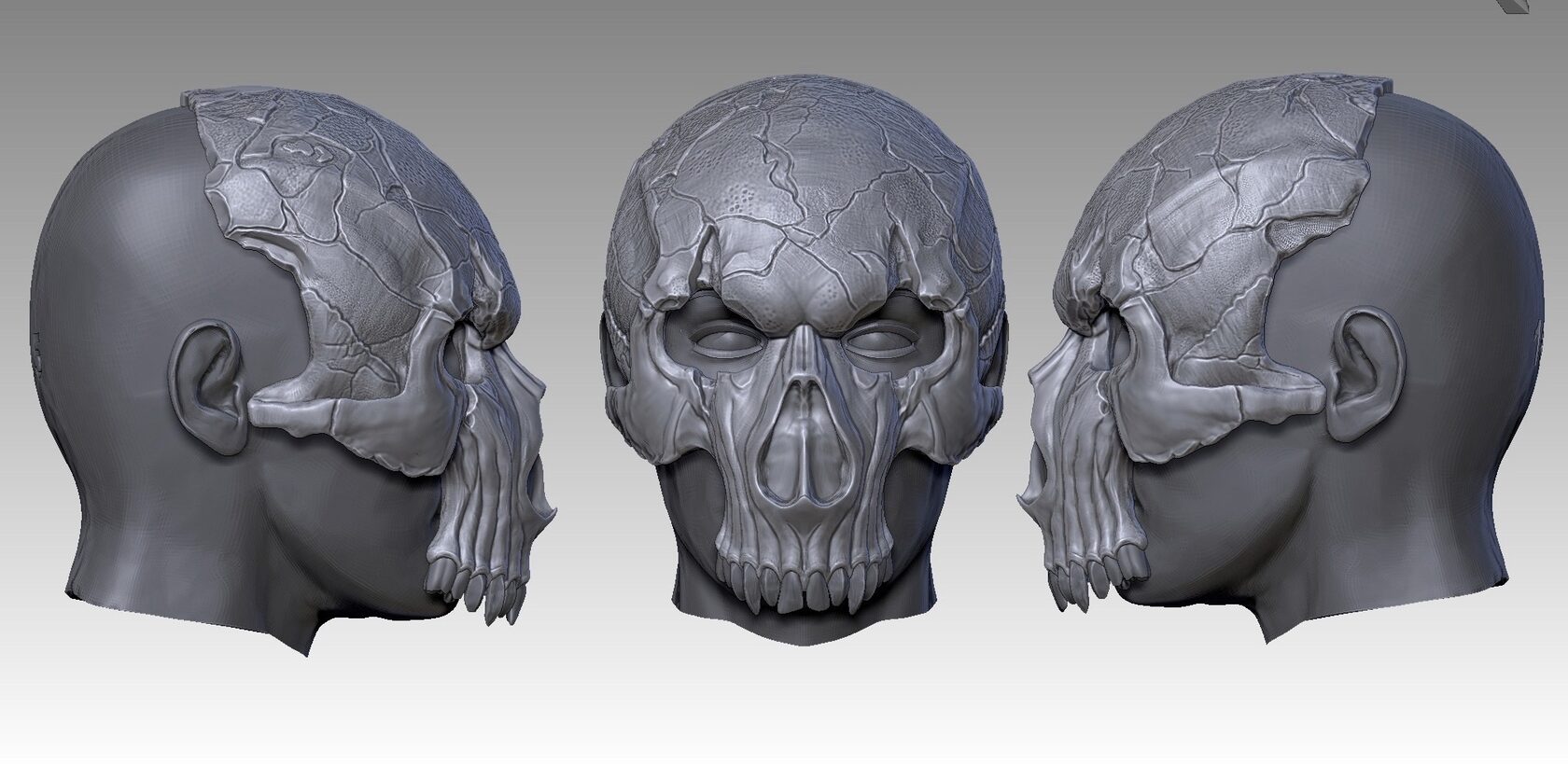 Так получилось и с маской Мертвого Жнеца. Заказчик обратился к нам с идеей ещё в марте. В августе мы приступили к воплощению идеи в жизнь. Персонаж — идея заказчика и мы корректировали модель черепа исходя из его задумки.